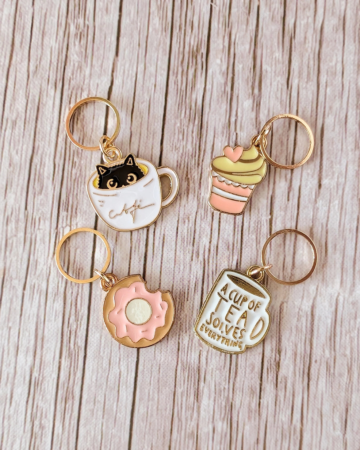 Set of 4 enamelled stitch markers.